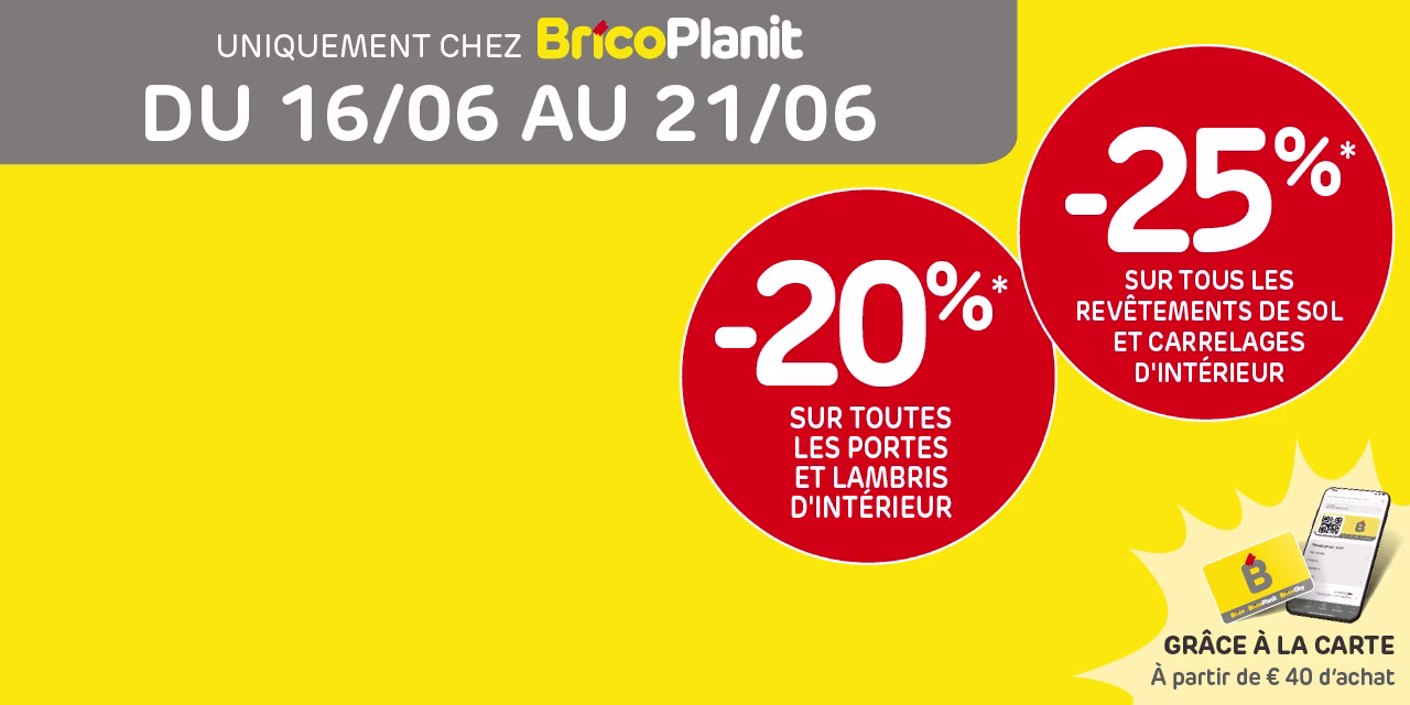 Profitez de remises exceptionnelles sur une sélection d'articles en magasin et sur brico.be. Faites vite, les stocks sont limités ! *Conditions dans la plupart des magasins.