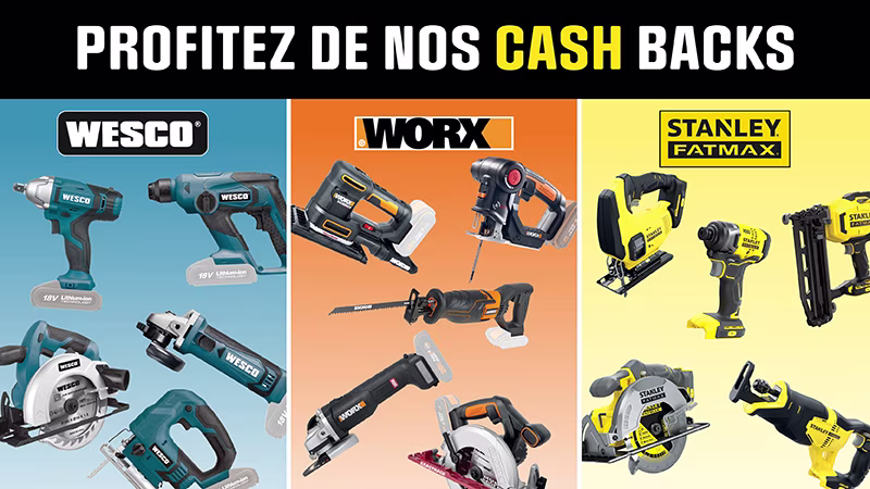 Profitez des offres cashback sur vos marques préférées en Powertools : Wesco, Worx, Stanley Fatmax ! Achetez maintenant et économisez sur une large gamme d'outils de qualité. Ne manquez pas cette opportunité de rendre vos projets encore plus abordables !