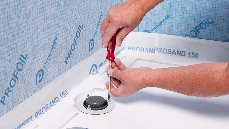 Posez ensuite le ruban d'étanchéité sur la partie supérieure. Prenez bien à la fois le mur et le bord du bac. Appliquez ensuite un mastic d'étanchéité pour sceller correctement tous les bords.