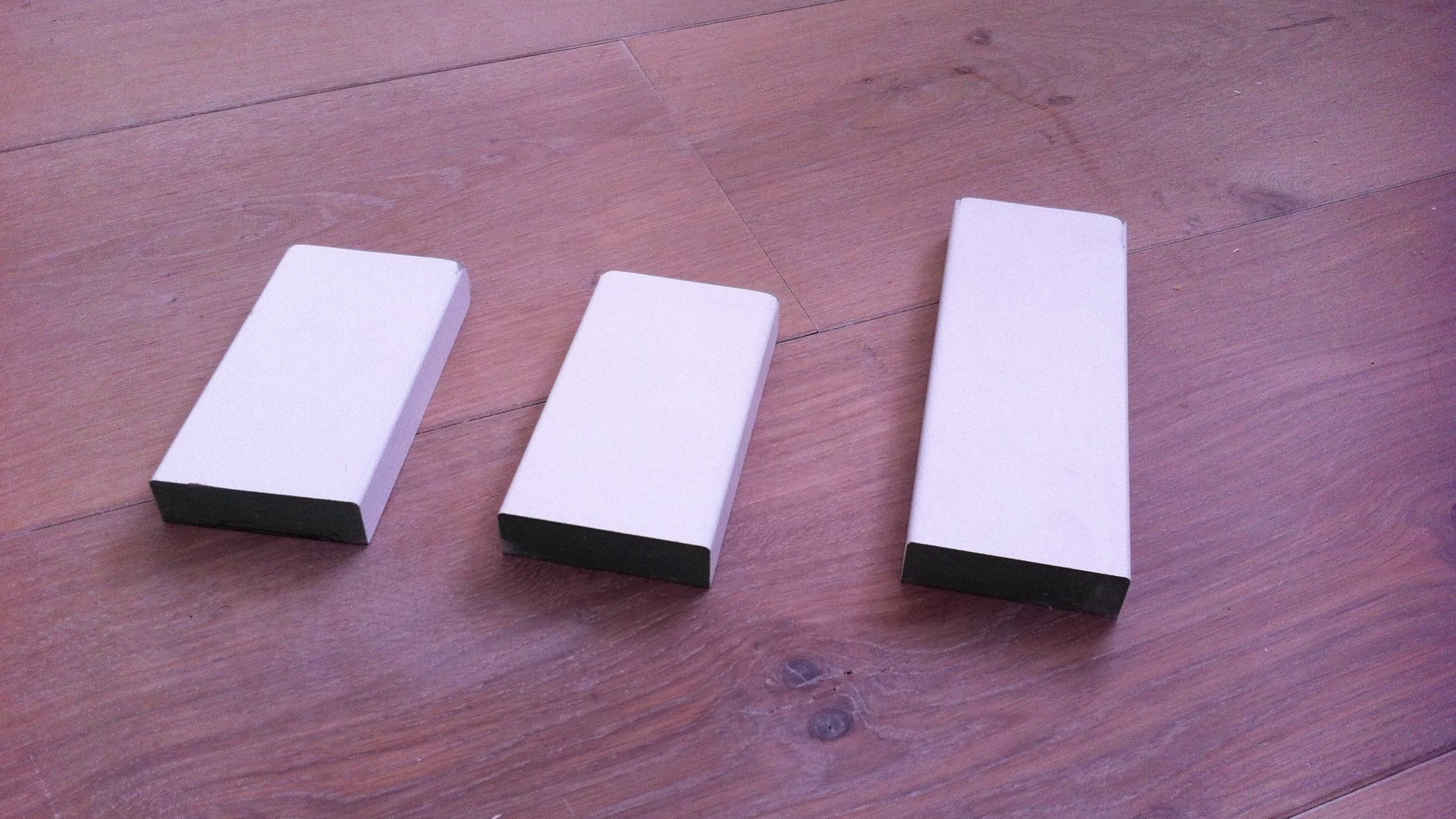 Plintneuten of hoekplinten zijn er in verschillende lengtes, breedtes, en diktes. Ook het materiaal waaruit een plintneut bestaat kan verschillen, deze hier beschreven zijn van MDF en zitten al in de grondverf.