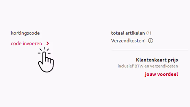 3. Winkelmand Onder het artikel dat je wilt kopen, klik je links op het scherm op "code invoeren". Plak daar je kortingscode. In de afbeelding hieronder zie je een voorbeeld van waar je de code moet invoeren. Als je meerdere artikelen in je winkelmandje hebt, wordt de korting toegepast op het duurste artikel.